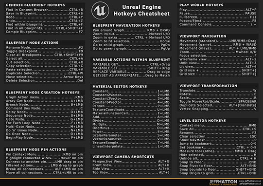 Unreal Engine Hotkey Cheatsheet: